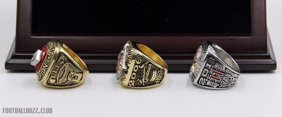 MLB 1982 2006 2011 St.Louis Cardinals World Series Championship Replica Fan Rings with Wooden Display Case Set