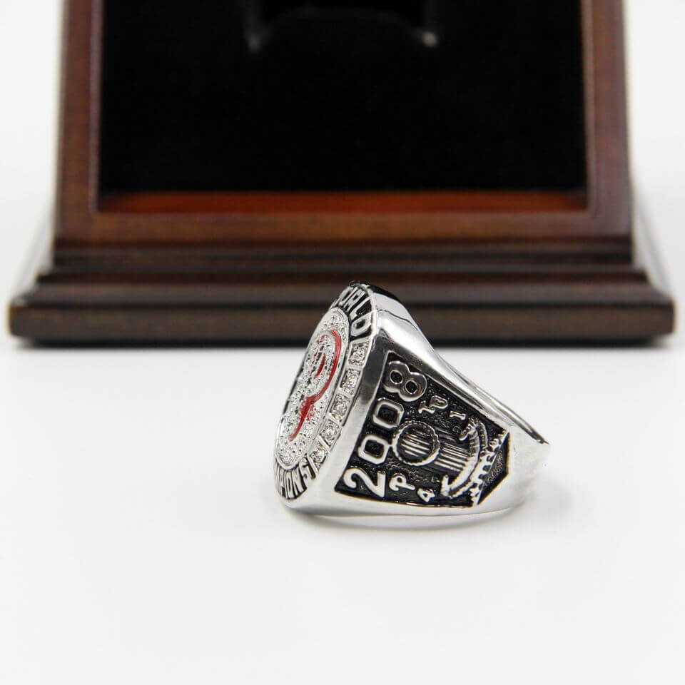 MLB 2008 Philadelphia Phillies World Series Championship Replica Fan Ring with Wooden Display Case includes 2008 Philadelphia Phillies World Series championship rings and a beautiful wooden display case with slanted glass window to make the rings display with pride and representing the honor of the team. It the best item to memorize the great time of Philadelphia Phillies defeated Tampa Bay Rays by 4:1 during 22th October and 29th October 2008