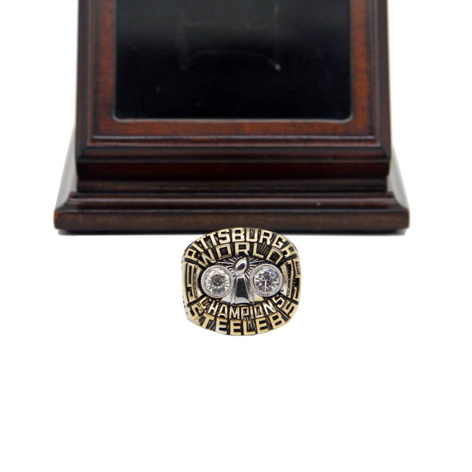 NFL 1975 Super Bowl X Pittsburgh Steelers Championship Replica Fan Ring with Wooden Display Case